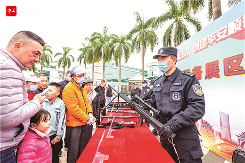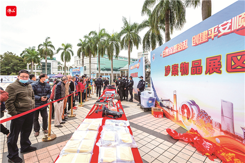 區(qū)級展現(xiàn)場設(shè)置了掃黑除惡成果宣傳展板、涉案物品展、特警裝備展、互動游戲、打卡留影區(qū)等多個展區(qū)。記者看到,掃黑除惡宣傳展板以組織部署、嚴懲黑惡、綜合治理、長效常治、宣傳發(fā)動等五大版塊,全方位展示了順德區(qū)掃黑除惡專項斗爭三年工作措施及成果。