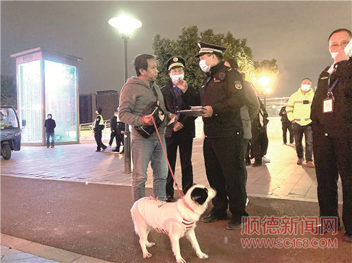 12 月16 日晚,順德區(qū)城市管理和綜合執(zhí)法局聯(lián)動十鎮(zhèn)街分局開展了區(qū)鎮(zhèn)兩級文明養(yǎng)犬執(zhí)法行動。圖為執(zhí)法人員對養(yǎng)犬人進行文明養(yǎng)犬勸導教育。