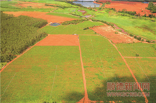 航拍陳家村與雷州市源果匯農(nóng)業(yè)科技有限公司合作共建種植面積達(dá)千余畝的楊家鎮(zhèn)番薯種植合作產(chǎn)業(yè)基地。/區(qū)扶貧辦供圖
