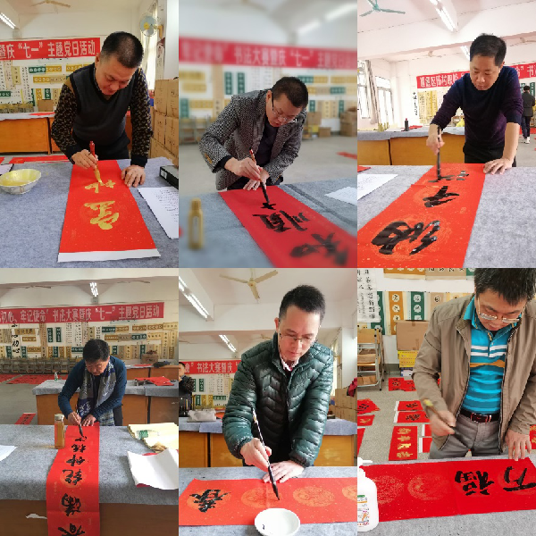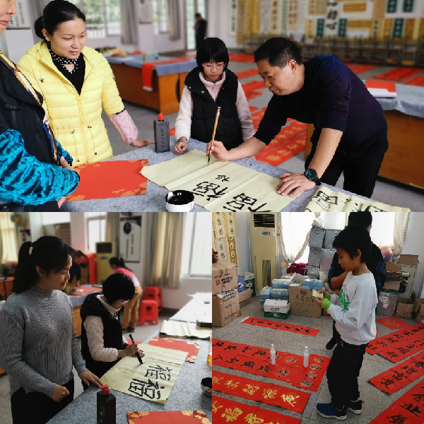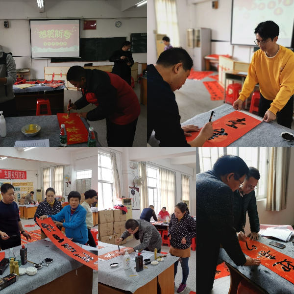 本次活動(dòng)邀請(qǐng)了韓雨龍、鐘全榮、李華、王海平、鄧富華、劉建華等具有書(shū)法特長(zhǎng)的黨員教師揮毫潑墨、送福迎新。工會(huì)委員提前精心準(zhǔn)備了對(duì)仗工整、精煉喜慶的春聯(lián)集錦,供全校教職工選擇。