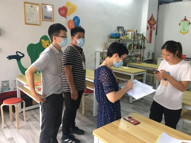 檢查主要圍繞兩方面:一個是無牌無證及未經核驗的校外培訓、托管機構專項整治;另一個是創(chuàng)文專項檢查,圍繞“1.社會主義核心價值觀海報張貼2.禁煙標識張貼3.創(chuàng)文廣告張貼4.分類垃圾桶擺放和標識5.背誦社會主義核心價值觀24字6.場室的衛(wèi)生清潔7.消防器材和消防檢查記錄”這七個方面進行重點檢查。