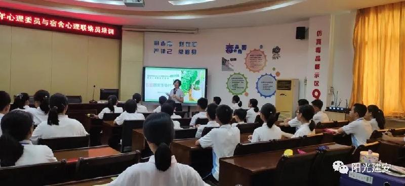 你的工作,很簡單。但有時(shí),又很不簡單,因?yàn)樗鎸Φ氖切撵`。相信自己,你是一束可以溫暖他人、支持他人的光!感謝你,你在,就是一束重要的光!”9月11日上午,建安中學(xué)在報(bào)告廳、會議一室分場次舉行了三個(gè)年級心理委員與宿舍心理聯(lián)絡(luò)員培訓(xùn)活動(dòng)。
