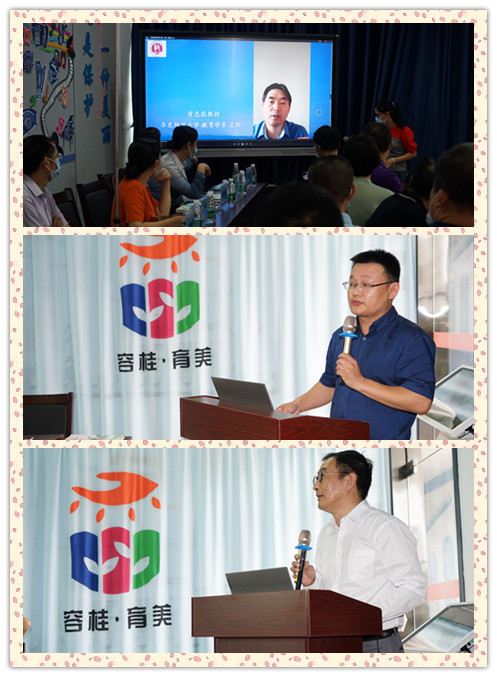 華東師范大學(xué)教育學(xué)系主任黃忠敬教授作為共創(chuàng)課程專家顧問代表,也提前為本次活動(dòng)錄制了講話。他充分肯定了育美集團(tuán)的課程日活動(dòng),認(rèn)為“主題有亮點(diǎn)、形式有創(chuàng)新、活動(dòng)有平臺(tái)”,課程資源的建設(shè)很好地把握住了“共享共創(chuàng)”的精髓。最后,他對(duì)與容桂育美教育集團(tuán)新一輪的合作表示期待。順德區(qū)教育發(fā)展中心副主任王濤先生講話認(rèn)為,利用現(xiàn)代教育技術(shù),結(jié)合微課、碼課利用二維碼的形式展示課程建設(shè)成果,在順德是個(gè)創(chuàng)新,課程館建設(shè)在國(guó)內(nèi)也是個(gè)創(chuàng)新。希望課程館能發(fā)揮其獨(dú)特的功能,在教師成長(zhǎng)的跑道上起到很好的助推作用,把它建設(shè)成為教師展示交流的平臺(tái)、骨干名師成長(zhǎng)的搖籃、教師活動(dòng)之家。順德廚師學(xué)院院長(zhǎng)陳健先生發(fā)表講話,他認(rèn)為本次活動(dòng)起點(diǎn)高、質(zhì)量?jī)?yōu)、有特色。起點(diǎn)高,源于育美集團(tuán)頂層設(shè)計(jì)、華東師大名家指導(dǎo);質(zhì)量?jī)?yōu),皆因集教師、專家、學(xué)校、集團(tuán)、行業(yè)、社會(huì)之力共享共創(chuàng),協(xié)同開發(fā);有特色,是因?yàn)殚_發(fā)特色課程、鄉(xiāng)土課程、通識(shí)課程,既重視知識(shí)傳承,又重視文化素質(zhì)教育。