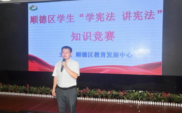 競(jìng)賽活動(dòng)上,順德區(qū)教育發(fā)展中心何儀昌副書記做賽前講話,何書記對(duì)開展此次競(jìng)賽活動(dòng)的背景以及目的、意義進(jìn)行了解讀,對(duì)競(jìng)賽紀(jì)律、規(guī)則提出了具體的要求,同時(shí)也寄語(yǔ)參賽選手要學(xué)習(xí)憲法、遵守憲法、維護(hù)憲法、運(yùn)用憲法,爭(zhēng)做憲法小衛(wèi)士。