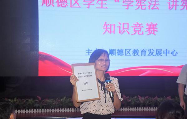 隨后,順德區(qū)教育發(fā)展中心學(xué)生成長(zhǎng)指導(dǎo)室李高程副主任就競(jìng)賽注意事項(xiàng)進(jìn)行強(qiáng)調(diào),紀(jì)律監(jiān)督員廖惠芳老師就考卷的拆封規(guī)范情況進(jìn)行監(jiān)督。此次知識(shí)競(jìng)賽分小學(xué)、初中、高中(含中職)3個(gè)組別,采取閉卷考試形式,圍繞憲法,結(jié)合誠(chéng)信規(guī)則意識(shí)、社會(huì)文明、自我保護(hù)等多個(gè)方面進(jìn)行。此項(xiàng)競(jìng)賽結(jié)束后,將按照小學(xué)、初中、高中(含中職)三個(gè)組別,分別評(píng)選出一、二、三等獎(jiǎng)以及優(yōu)秀輔導(dǎo)老師獎(jiǎng)。每個(gè)組別獲得第一名的選手將代表順德區(qū)參加市級(jí)知識(shí)競(jìng)賽。