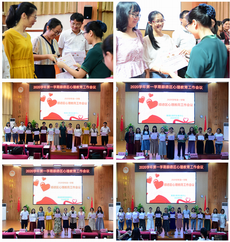 會議最后一項內容是對上一學年優(yōu)秀心理教師進行表彰。頒發(fā)了心理輔導助力中高考活動積極分子等證書,同時還下發(fā)了順德心理獲得省、市獎勵的證書。沉甸甸的收獲,是對專職心理教師付出的肯定,笑容洋溢在每一位順德心育人臉上。
