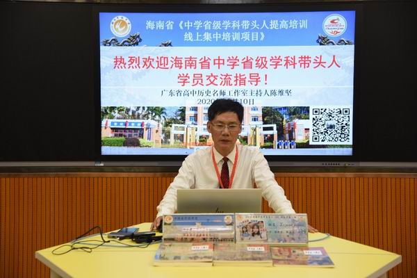 2020年10月10日上午9時(shí),陳維堅(jiān)老師受邀參與由海南師范大學(xué)繼續(xù)教育學(xué)院主辦、全國(guó)中小學(xué)教師繼續(xù)教育網(wǎng)承辦的中學(xué)省級(jí)學(xué)科帶頭人提高培訓(xùn)項(xiàng)目。參加本次線上培訓(xùn)項(xiàng)目的教師均是海南省2017―2021年度中學(xué)省級(jí)學(xué)科帶頭人,其中初中學(xué)科帶頭人22人,高中學(xué)科帶頭人47人。為幫助學(xué)員明確“凝練個(gè)人教學(xué)主張對(duì)專業(yè)成長(zhǎng)的必要性”,廣東省高中歷史陳維堅(jiān)名師工作室主持人、順德區(qū)陳維堅(jiān)特級(jí)教師工作室主持人――陳維堅(jiān)老師在廣東省高中歷史陳維堅(jiān)名師工作室以直播的形式作了以《名師教學(xué)主張自主凝練》為題的專題講座。該講座為此次培訓(xùn)的首場(chǎng)專家講座。在兩個(gè)半小時(shí)的講座中,陳維堅(jiān)老師傾囊相授為參培學(xué)員帶來(lái)了實(shí)用且有益的教育教學(xué)建議,為廣大參培學(xué)員提供了今后發(fā)展的思路和方向,也為本次線上培訓(xùn)項(xiàng)目打下了一個(gè)良好的基礎(chǔ)。