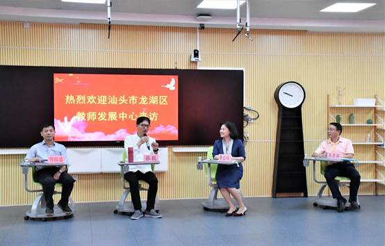 在交流互動環(huán)節(jié),汕頭市龍湖區(qū)研訓(xùn)團(tuán)隊就教研工作的有效開展、質(zhì)量監(jiān)測的系統(tǒng)運(yùn)作、智慧課堂的實際運(yùn)用等問題進(jìn)行提問,雙方人員積極互動,交流經(jīng)驗。