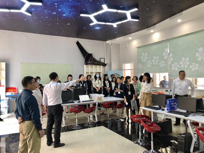 在濮文磊校長的帶領下,來賓們參觀了創(chuàng)客空間等功能室場。我校優(yōu)美的校園環(huán)境、完善的設施設備,獨具特色的校園文化贏得來賓的高度盛贊,內容豐富的文化墻、雅致的校園景觀,處處讓客人們駐足留影。