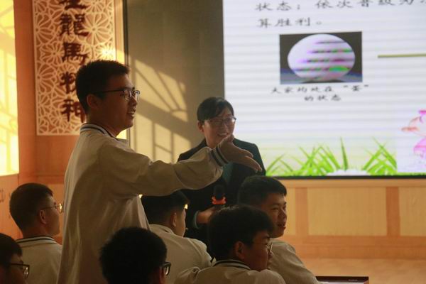 首先,由順德區(qū)第一中學(xué)陳敬霞老師進(jìn)行《向陽(yáng)而生方能行遠(yuǎn)》班會(huì)課展示。陳老師緊緊扣住高三學(xué)習(xí)情況以及高三學(xué)生的特點(diǎn),以生物學(xué)科知識(shí)滲入班會(huì)課中,將教書育人有機(jī)結(jié)合的主線,從趣味游戲?qū)?,在游戲中激發(fā)學(xué)生的活動(dòng)興趣,并且營(yíng)造輕松愉快的學(xué)習(xí)氛圍,接著順勢(shì)引出高三學(xué)習(xí)的壓力,貼近學(xué)生的學(xué)習(xí)現(xiàn)狀,讓學(xué)生都有感而發(fā),并且充分利用合作形式,讓學(xué)生在交流溝通中思考解決辦法,結(jié)合生物知識(shí)引導(dǎo)學(xué)生樹立“向陽(yáng)而生方能行遠(yuǎn)”的精神與意志,傳播正能量。陳老師的班會(huì)課形式多樣,以學(xué)生為主體,將思想升華,讓聽眾們獲益良多。