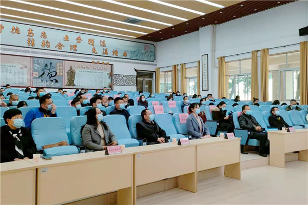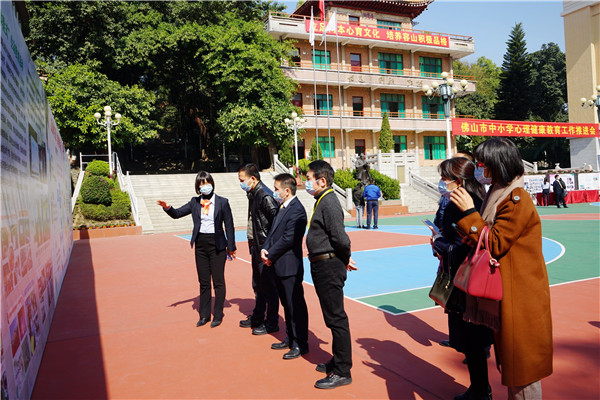 2021年1月13日下午,佛山市中小學心理健康教育工作推進會參會嘉賓150余人在佛山市教育局三級調(diào)研員陳贊虎、佛山市教育局德育體育衛(wèi)生與藝術(shù)科一級主任科員龐志陽的帶領(lǐng)下,蒞臨容山中學,參觀學校的心理健康教育特色成果。
