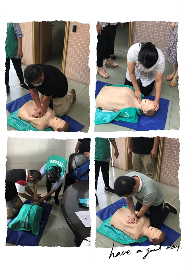 本次救護培訓分為理論學習和實際操作兩部分內(nèi)容,左醫(yī)生首先圍繞“心肺復蘇術(shù)”的相關(guān)知識和技能,進行了生動、形象、深入淺出的講解。隨后,左醫(yī)生指導每位教師進行心肺復蘇術(shù)的實操演練,詳細演示了心肺復蘇的按壓頻率、動作要領(lǐng)等。此外,左醫(yī)生還向我們普及了著名的海姆立克急救法等意外傷害急救知識。