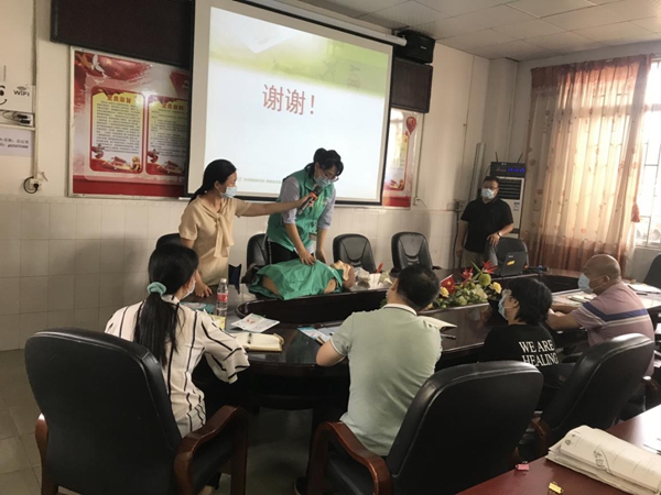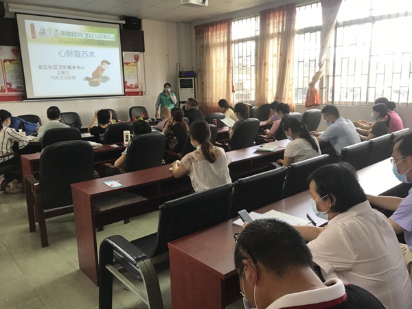 根據(jù)《佛山市順德區(qū)人民政府辦公室關(guān)于印發(fā)順德區(qū)健康村(社 區(qū))工作實施方案(2018-2020 年)的通知》和《2020 年順德區(qū)健康教育和健康素養(yǎng)促進項目工作方案》,為更好地推進健康細胞創(chuàng)建 工作,結(jié)合我鎮(zhèn)“全國億萬農(nóng)民健康促進行動”、“健康龍江”建設(shè),為在校園普及衛(wèi)生救護常識,培養(yǎng)教師的安全意識,提高自身保護能力。6月22日下午,龍江社區(qū)衛(wèi)生服務(wù)中心左敏芝醫(yī)生蒞臨我校,為全體教師進行了一場急救技能知識培訓。