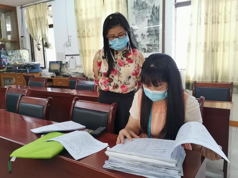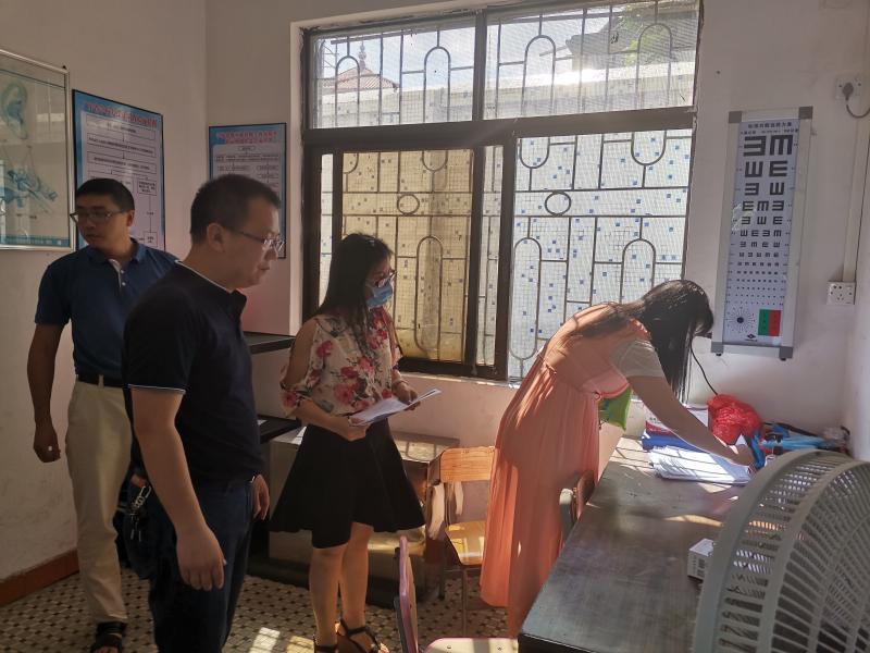 周紅玉督學(xué)來到蘇溪小學(xué),楊非副校長、梁兆玲主任、朱宏輝主任、胡蘊玲主任陪同檢查。周督學(xué)巡查了校門口、保安室、學(xué)校保健室、健康觀察室等校內(nèi)重要場所,并查看校門口外來訪客信息登記表、師生測溫記錄、場室消毒記錄、健康教育記錄等各項臺賬資料。