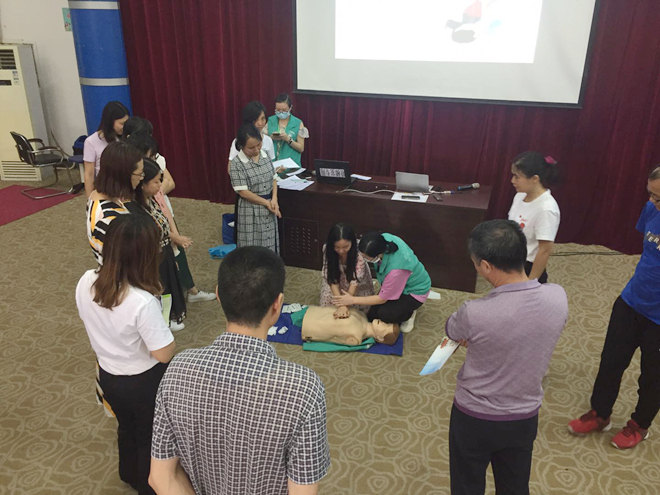 為了向廣大教職工普及緊急情況自救能力,增強自我保護意識,促進廣大教職工的身心健康。6月30日下午,龍江社區(qū)衛(wèi)生服務中心張運雙臨床醫(yī)師給我校舉辦了“徒手心肺復蘇術”知識講座活動。