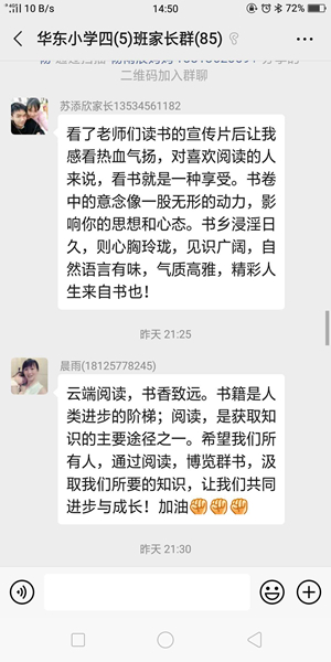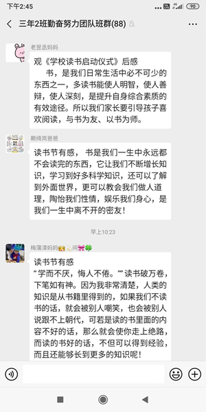 各班家長們也在線上進(jìn)行讀書節(jié)互動(dòng)