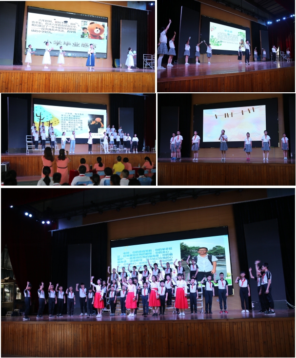 伴隨著收獲的喜悅,以“感恩有您――回憶童年――童夢起航”為線索的“童暢畢業(yè)秀”精彩綻放?!陡卸鞯男摹肥终Z舞、《感恩母?!吩姼枥收b、《少年》班級大合唱、《芒種》歌舞等,六年級各班精心準備的節(jié)目讓我們看到了“至誠至真”的童心少年風采,演繹著一份最美的記憶――在童心城小遇見最好的自己!