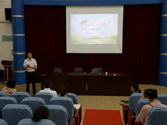 廣州市白云區(qū)教育研究院專家王建春老師為全體教師們進(jìn)一步深入解讀文本。會上他先對華東小學(xué)的校園文化建設(shè)和幸福教育的定位給予了充分的肯定,尤其對學(xué)校環(huán)境文化建設(shè)的生態(tài)性和人文性理念十分欣賞。王建春老師指出華東小學(xué)有著其它學(xué)校不可企及的厚底蘊(yùn)和大格局,只要能夠抓住發(fā)展契機(jī),就一定能夠打造高質(zhì)量的校園特色品牌,成就幸福教育。