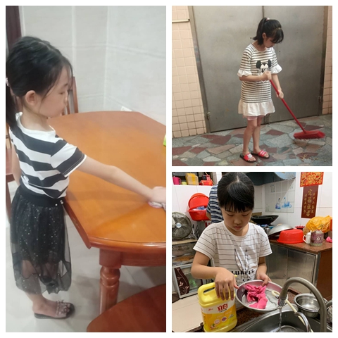 百善孝為先,學會感恩、學會分擔也是我們?nèi)松械闹匾徽n。在這個暑假,龍江坦田小學開展了暑假家務勞動活動,要求孩子們用自己的小手分擔父母的家務勞動,如;做飯、洗衣、洗碗、掃地、抹桌、澆花等,做一些力所能及的家務,做一個愛勞動的孩子??窗?!小朋友們都忙得熱火朝天。