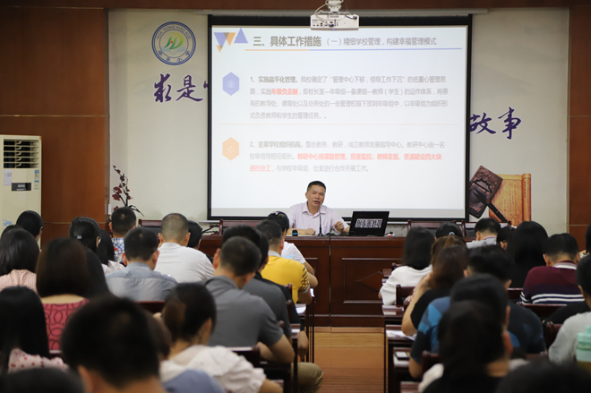 隨后,學(xué)校領(lǐng)導(dǎo)班子成員分別就學(xué)校教學(xué)、德育、特色社團(tuán)等各項(xiàng)工作做了重要講話。葉麗燕副校長(zhǎng)主要從管理、教科研和書(shū)香校園建設(shè)活動(dòng)三大方面對(duì)新學(xué)期教學(xué)教研工作進(jìn)行部署,希望我校教學(xué)成績(jī)更上一層樓。何慧榮副校長(zhǎng)主要從教育理念、德育隊(duì)伍建設(shè)、學(xué)生干部隊(duì)伍建設(shè)、家校聯(lián)系、養(yǎng)成教育和校園文化方面對(duì)新學(xué)期德育工作進(jìn)行安排,希望良好的德育能為學(xué)生錦上添花。廖檳強(qiáng)書(shū)記則從學(xué)校特色社團(tuán)方面展開(kāi)布置,希望新學(xué)期我校特色社團(tuán)更加燦爛多姿。伍其印主任和嚴(yán)冬花主任分別從教師紀(jì)律和安全方面做出要求,保障學(xué)校在教育教學(xué)期間安全有序。