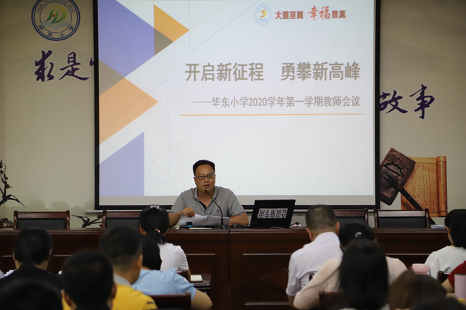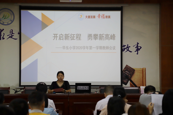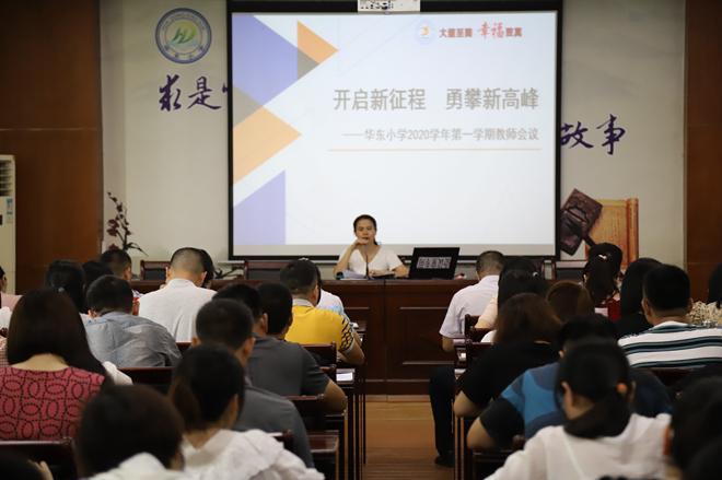 繽紛的九月,伴著夏季的最后一絲熱氣,我們又迎來(lái)了開(kāi)學(xué)季。告別長(zhǎng)假,新學(xué)期,開(kāi)啟新征程。為了確保開(kāi)學(xué)工作的順利進(jìn)行,8月30日上午,華東小學(xué)召開(kāi)新學(xué)期全體教職工會(huì)議。會(huì)議由何慧榮副校長(zhǎng)主持。