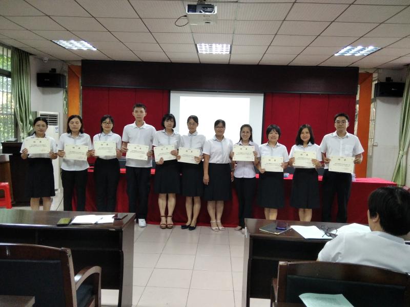 廖校長為各科各年級備課組長頒發(fā)聘書