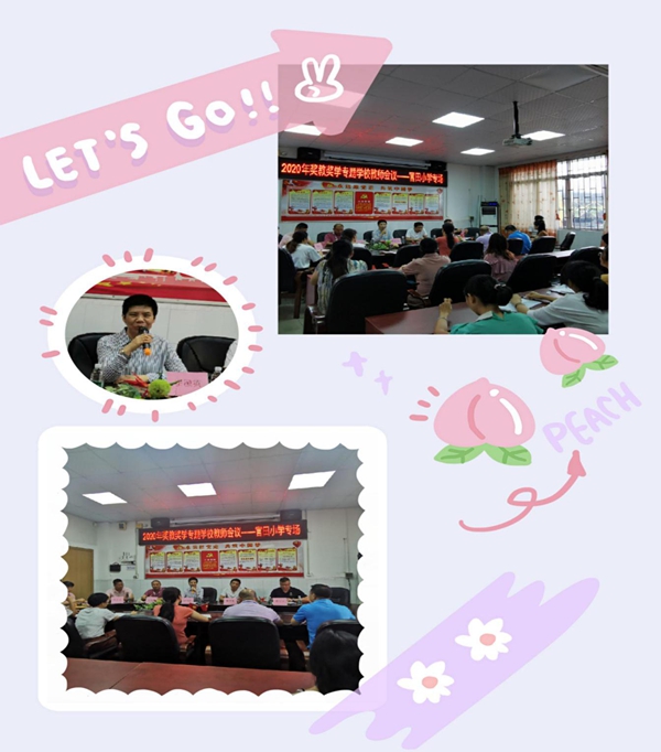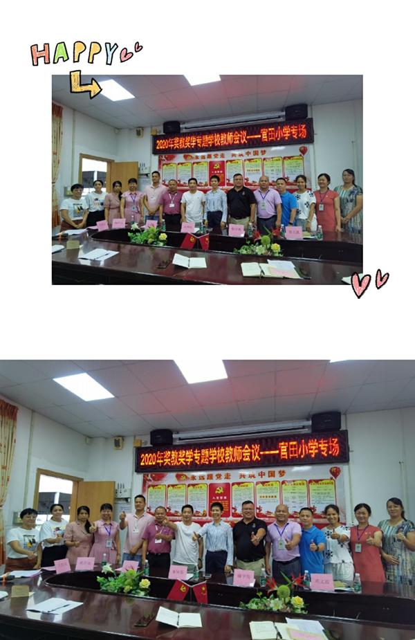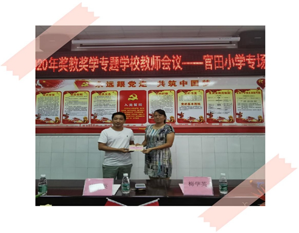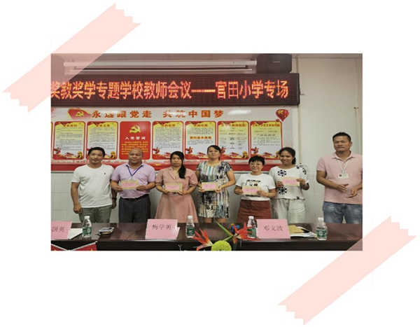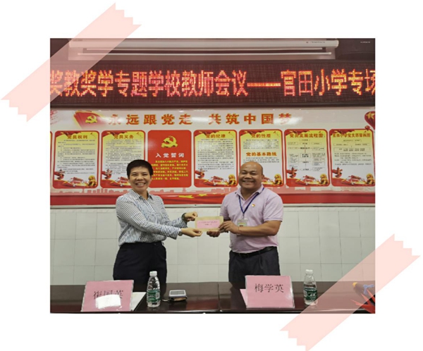 為表彰2019學(xué)年教育教學(xué)工作中做出突出貢獻(xiàn)、取得優(yōu)異成績的優(yōu)秀教師。9月8日下午,2020學(xué)年獎教獎學(xué)專題學(xué)校教師會議――官田小學(xué)專場于我校會議室隆重舉行。龍江鎮(zhèn)黨委委員崔國英,龍江官田村委書記梅學(xué)英,龍江鎮(zhèn)教育辦專干吳偉洪,龍江官田村委主任鄧開遠(yuǎn)及我校全體教職工出席本次會議,會議由我校副校長周紅玉主持。