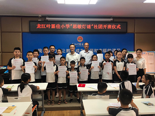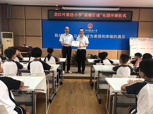 燈謎藝術(shù),源遠(yuǎn)流長(zhǎng),雖形式短小,但內(nèi)容豐富,是融知識(shí)性、思想性、思維性、趣味性為一體的微型文學(xué)藝術(shù)和傳統(tǒng)藝術(shù)。我校燈謎社團(tuán)經(jīng)過幾年的發(fā)展,已經(jīng)取得了一定的規(guī)模。為進(jìn)一步深挖燈謎特色內(nèi)涵,傳揚(yáng)優(yōu)秀的燈謎傳統(tǒng)文化,擴(kuò)大品牌社會(huì)影響,2020年9月4日“思敏”燈謎社團(tuán)特色項(xiàng)目進(jìn)行了隆重的開班儀式,特別邀請(qǐng)了順德區(qū)燈謎協(xié)會(huì)譚沃強(qiáng)會(huì)長(zhǎng)前來(lái),并正式聘請(qǐng)譚會(huì)長(zhǎng)為我校“思敏”社團(tuán)名譽(yù)團(tuán)長(zhǎng)及首席導(dǎo)師。