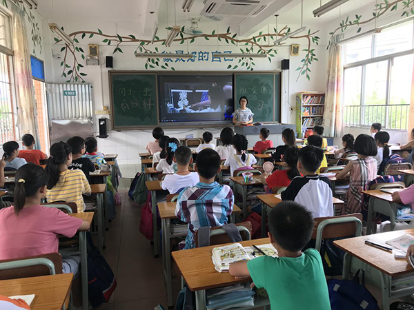 圖為:歐老師在進(jìn)行“同講普通話,攜手進(jìn)小康”主題班會