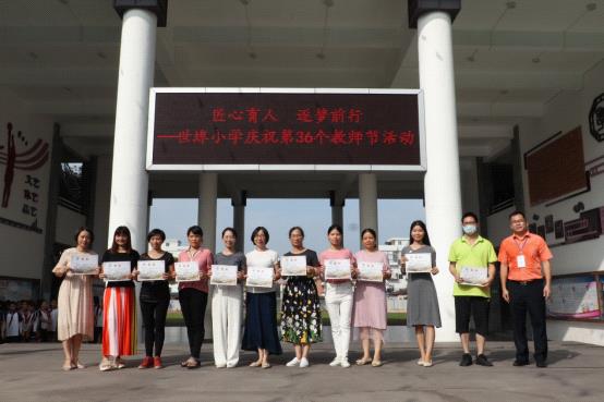 接下來,,世埠小學(xué)八名學(xué)生代表上臺(tái)向全體教師獻(xiàn)詞。耕耘密無(wú)痕,潤(rùn)物細(xì)無(wú)聲,他們用滿懷感恩的聲音向所有教師獻(xiàn)上節(jié)日的祝福。伴隨著陣陣感動(dòng),羅校長(zhǎng)為獲得2019學(xué)年學(xué)校優(yōu)秀班主任、優(yōu)秀副班主任的老師們頒獎(jiǎng),勉勵(lì)獲得表彰的老師充分發(fā)揮示范帶動(dòng)作用,激勵(lì)全體教師奮發(fā)向上,勇當(dāng)先進(jìn)。