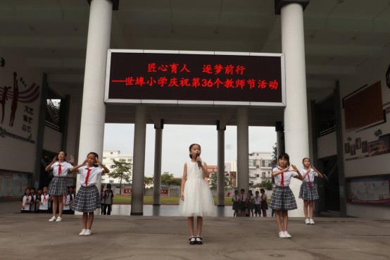 首先,四 2 班梁瑾萱同學(xué)獻(xiàn)唱《聽我說謝謝你》,表達(dá)對(duì)教師的謝意和祝福,贏得了在場(chǎng)老師們陣陣熱烈的掌聲。