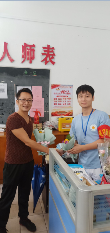 (家委代表們手捧鮮花向老師們送來滿滿的節(jié)日儀式感)