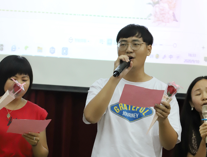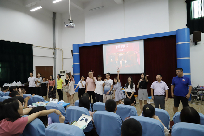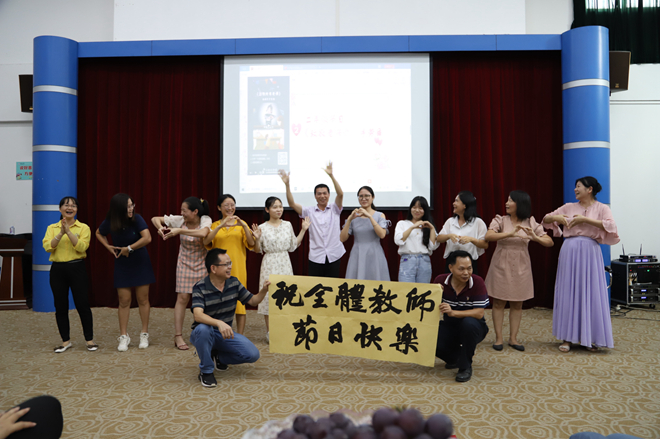 9月10日下午,全體教師聚集學校階梯式,進行了短暫的慶祝教師節(jié)活動。簡單的下午茶,臨時排練的小節(jié)目,讓現(xiàn)場到處都洋溢著幸福、快樂的節(jié)日氣息!