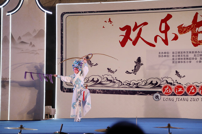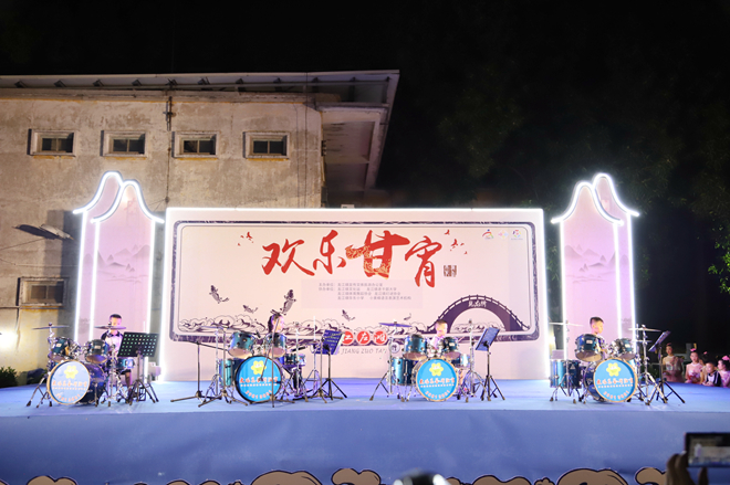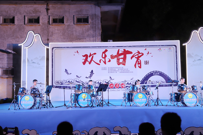 我校粵劇老師和小演員們給甘竹群眾帶來了《趙子龍之甘露寺》、《思凡》等11個(gè)粵曲節(jié)目。除了粵曲,我校小鼓手們還帶來了《鼓舞中國》、《改變自己》等4個(gè)爵士鼓節(jié)目。星光閃耀,粵韻聲聲,這是華東小學(xué)粵劇小演員們的夜晚,也是甘竹人們的夜晚。