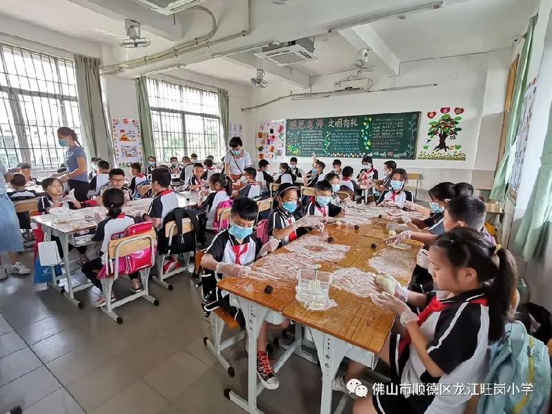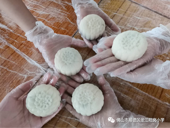 接下來,在幾位家長的幫助下,同學們先做好了做月餅的準備――鋪好桌面、按比例分好面皮和餡,個個都懷著激動的心情等待著做月餅。