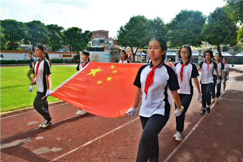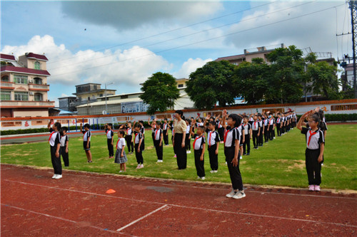 活動第一站,幼兒園小朋友們和奮揚學(xué)子代表在學(xué)校操場上共同參與升旗儀式。幼兒園小朋友們看著奮揚學(xué)子整齊有序的隊伍、莊嚴(yán)的站姿、規(guī)范的升旗禮,體驗到了升國旗時的莊嚴(yán)與肅穆。