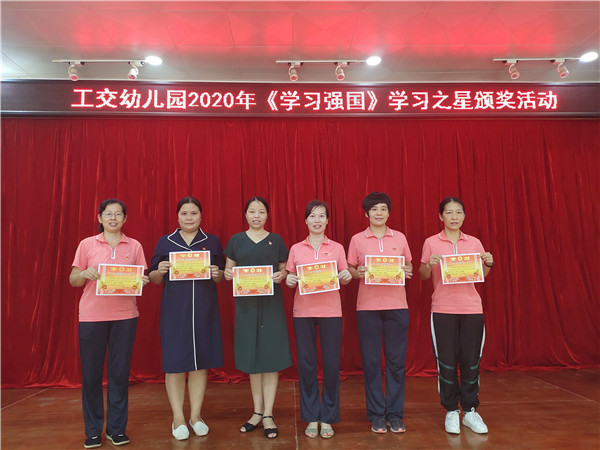 6月30日上午在工交幼兒園黨支部組織委員梁燕芳同志主持下,開展了全園教職工“學(xué)習(xí)強(qiáng)國”平臺學(xué)習(xí)評比表彰活動(dòng)。進(jìn)一步激發(fā)教職工主動(dòng)學(xué)、深入學(xué)“學(xué)習(xí)強(qiáng)國”的熱情與動(dòng)力,促使黨員、群眾形成在平臺上學(xué)習(xí)的日常習(xí)慣和行為自覺,促進(jìn)廣大黨員、群眾共同進(jìn)步。會上,首先公布了每位教師的學(xué)習(xí)積分及排名情況,并依此評選出一、二、三等獎(jiǎng)。由柯英麗書記為獲獎(jiǎng)教師頒發(fā)了獎(jiǎng)狀。