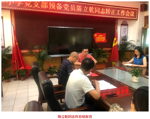 7月10日,永豐小學黨支部的全體黨員在學校會議室召開預備黨員轉(zhuǎn)正大會,討論陳立乾同志的轉(zhuǎn)正問題,會議由黨支部組織委員鄧源強同志主持。