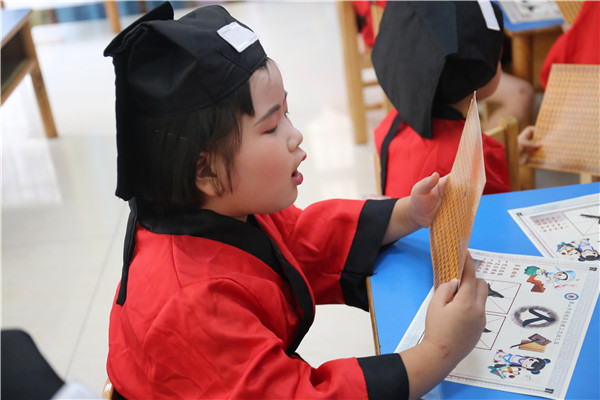 開筆禮活動(dòng)中,可愛的孩子們身著學(xué)子服,懷揣著對(duì)傳統(tǒng)經(jīng)典文化的敬畏之心,在夫子老師的引導(dǎo)下進(jìn)行了端正衣冠、沐手凈面、叩拜先師、朱砂啟智、擊鼓鳴志、啟蒙描紅、吟誦經(jīng)典、感恩鞠躬等系列儀式。在中國(guó)古代孩子們進(jìn)學(xué)堂讀書、學(xué)禮是一件人生大事學(xué)堂有一個(gè)莊重的儀式流傳了千百年叫做"開筆禮","開筆禮"是中國(guó)傳統(tǒng)文化求學(xué)四大禮之一,俗稱"開筆破蒙"。通過(guò)開筆禮這樣莊重的儀式可以讓孩子們感受開筆啟蒙是人生的一件大事,是開始學(xué)習(xí),走向成才的起點(diǎn)。