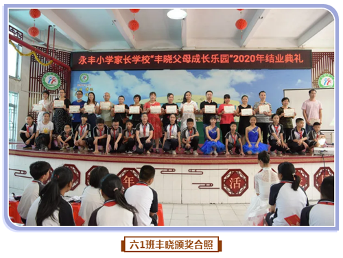 一張張稚嫩的笑臉,見(jiàn)證著孩子們的成長(zhǎng)與歡樂(lè)。六年級(jí)的家長(zhǎng)們?cè)谪S曉父母成長(zhǎng)樂(lè)園已經(jīng)學(xué)習(xí)了六年級(jí)了。孩子們畢業(yè)了,家長(zhǎng)們也結(jié)束了在豐曉父母成長(zhǎng)樂(lè)園里的學(xué)習(xí),孩子們把家長(zhǎng)帶上舞臺(tái),為爸爸媽媽們頒發(fā)他們的結(jié)業(yè)證書(shū)!