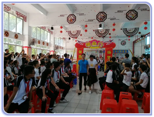 最激動(dòng)人心的時(shí)刻到了!由各班班主任帶領(lǐng)著同學(xué)們走過(guò)畢業(yè)門(mén),上臺(tái)接受吳校長(zhǎng)頒發(fā)的畢業(yè)證書(shū),并拍照留念。
