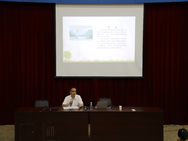 廣州市白云區(qū)教育研究院專家王建春老師為全體教師們進(jìn)一步深入解讀文本。會上他先對華東小學(xué)的校園文化建設(shè)和幸福教育的定位給予了充分的肯定,尤其對學(xué)校環(huán)境文化建設(shè)的生態(tài)性和人文性理念十分欣賞。王建春老師指出華東小學(xué)有著其它學(xué)校不可企及的厚底蘊(yùn)和大格局,只要能夠抓住發(fā)展契機(jī),就一定能夠打造高質(zhì)量的校園特色品牌,成就幸福教育。