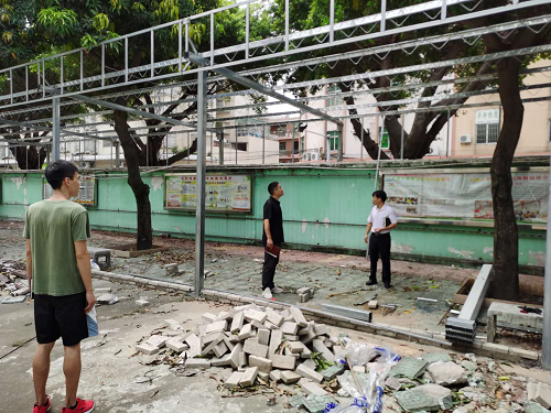 何小祥校長(zhǎng)及行政帶領(lǐng)安全組成員巡查校園工程隱患