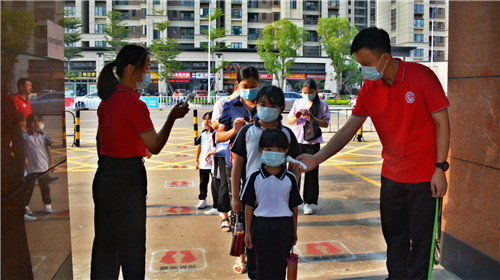 早上8點左右,新生家長及孩子們佩戴口罩,排隊通過校門口測溫區(qū),在老師們的指引下井然有序地進(jìn)入各班教室。一年級的各班教師早早就做好了準(zhǔn)備,將教室打掃干凈,桌椅整齊擺放。各班精心布置著教室,黑板上寫著“我們上一年級啦!”,畫著溫馨的畫圖。教室的布置,讓家長及孩子們充分感受到我校溫馨和諧的氛圍。