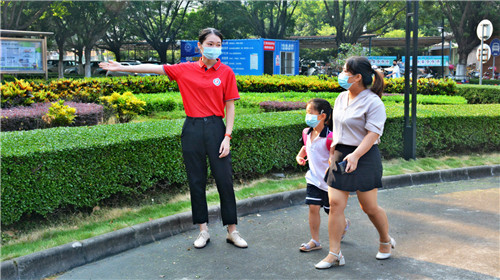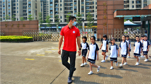 會議結(jié)束后,家長們回到孩子所在班級教室。各班班主任與各科任老師向家長講述本學(xué)科特點與教學(xué)要求,就孩子學(xué)習(xí)方面的問題進(jìn)行融洽地交流。同時,孩子們在副班主任老師的帶領(lǐng)下喝水、如廁,熟悉校園環(huán)境與上學(xué)、放學(xué)路線,并進(jìn)行集隊訓(xùn)練。最后,在老師們的帶領(lǐng)下,家長與孩子們實地演習(xí)了一次家長接送的相關(guān)事宜。