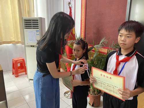 9月25日下午,鐘淑惠輔導員老師公布了新一屆少先隊大隊委員名單,并為新一屆大隊委員頒發(fā)聘書、授予隊干標志。