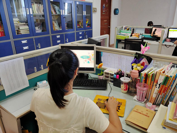 班主任認(rèn)真地做家長(zhǎng)會(huì)前的準(zhǔn)備工作