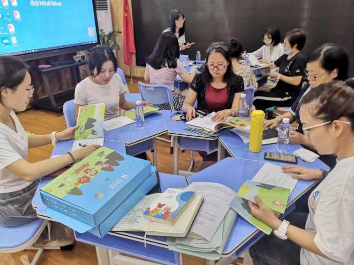 倫教小學(xué)英語科組教師們分備課組進(jìn)行繪本教學(xué)研討