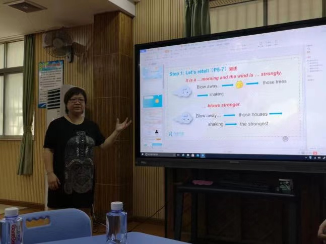 此次的培訓(xùn)活動由倫教小學(xué)葉輝娜副校長的發(fā)言展開,葉輝娜副校長為教師們匯報(bào)總結(jié)了上一學(xué)期倫教小學(xué)可瀚學(xué)堂英語繪本實(shí)驗(yàn)班及校本課程開設(shè)的情況,分析了繪本教學(xué)的現(xiàn)狀,并公布了新學(xué)期可瀚繪本教學(xué)和匯報(bào)展示等工作計(jì)劃,為英語科組有序展開新學(xué)期繪本教學(xué)指明了清晰的方向。