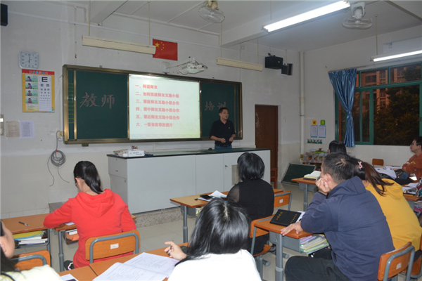 最后,數學科徐建斌副校長以自己任教的四1班為例,分享了他在班級推廣師友互助小組合作學習的做法。徐副校長的語言幽默風趣,做法實在且接地氣,作為主管教學的行政,他身先士卒,利用課余時間,手把手引導學生小組師友互助合作匯報展示的方法;同時他指出兵教兵,學生當小老師幫助同伴學習,確實是有效的合作學習方式。